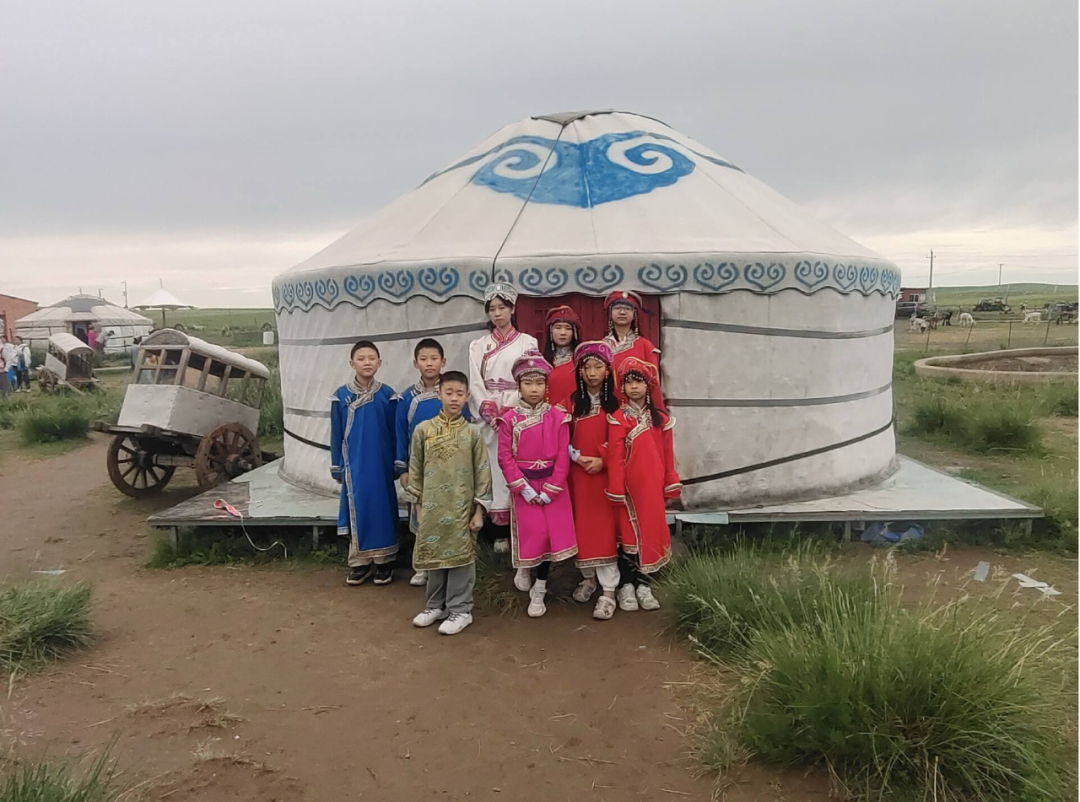 金牌导游还向孩子们介绍了蒙古族的习俗与团结的精神,孩子们喝了浓香的奶茶,倾听了导游介绍的哈达颜色,奶茶制作以及族群崇拜等有趣故事,少年在笔记本上工整记录:“蓝色哈达象征蓝天,白色代表祥云,是蒙古族最纯净的祝福。”