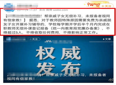 不久前,某地一老师无偿给亲戚孩子补课被举报,当地发通告,帮亲戚子女无偿补课,需要向学校备注,否则视为有偿补课。