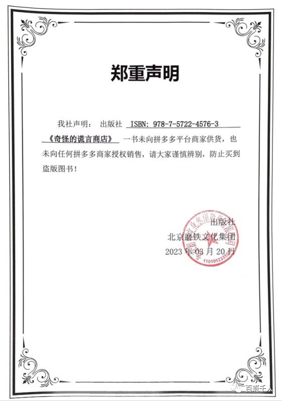 出版社郑重声明:百班千人50期共读书,并未向拼多多平台商家供货和授权销售,请大家谨慎辨别,防止买到盗版书!