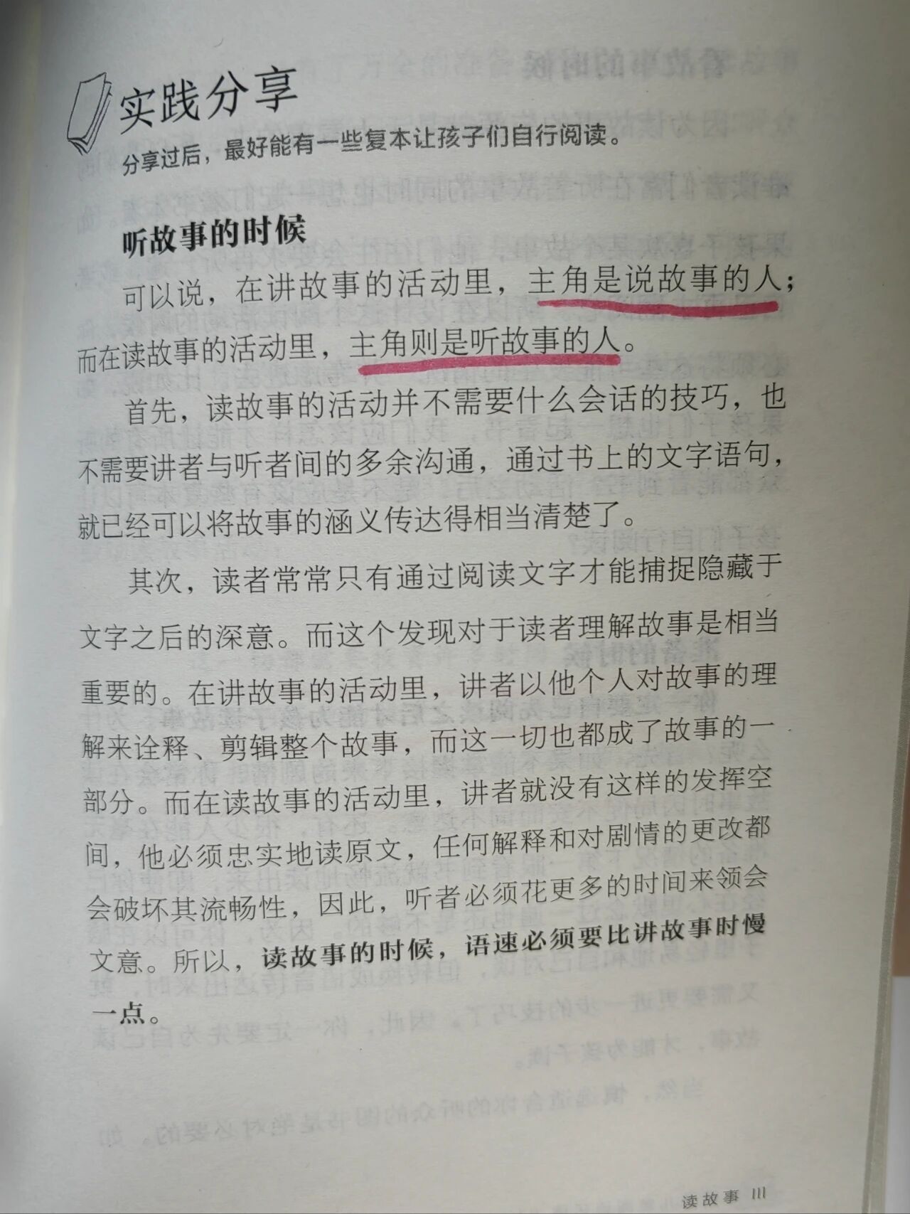 讲故事的活动里,有较多的情感融入其中,效果更戏剧化;而读故事的活动,比较倾向于注重个人感受的乐趣。