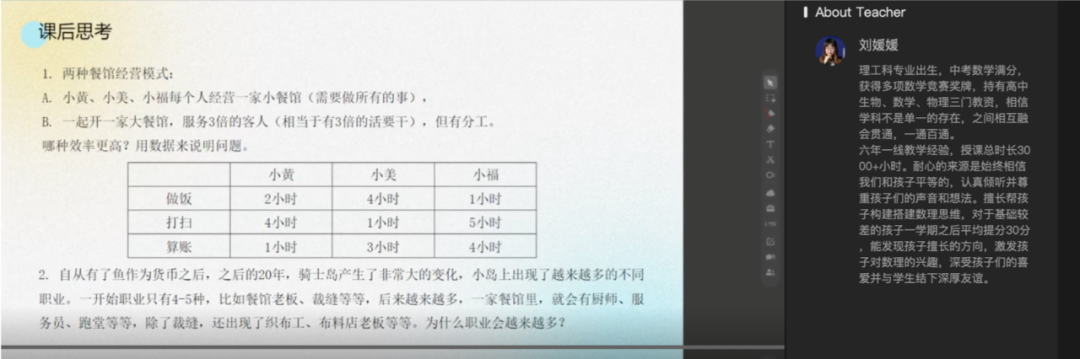 圆桌数理的一切,都源自于哥大通识课程体系的设计。课程领衔研发人李娜老师,是美国哥伦比亚大学教育认知学博士,长期研究儿童思维开发。陈硕老师,清华大学本硕,北京市优秀毕业生,清华大学优秀辅导员。清华-伯克利全球创业项目x-math创始人,12年教龄,开发并教授数学、物理、学习方法、思维训练等课程。CEO周枫,毕业于全美排名第二的伊利诺伊大学电子工程系,曾任硅谷Intapp公司带领跨国产品团队。钱铁铮老师,复旦大学本科,力学与工程科学、经济学双学位,台湾政治大学哲学硕士,博士研究生,文史理工等多个领域全才。圆桌星球这个有过培养文科底层“思辨”能力经验的强教研师资团队,如今也是把他们的成功经验,迁移到了理科底层的“思维”能力上。可以说,在注重孩子思维学习成果这件事上,他们是有过之而无不及!因为数学它不像是语文,即便身在教育行业多年,也很难用寥寥数语,完美呈现出其中的奇思与妙想!如此锻炼孩子底层能力,又能一站式从归纳、推理、空间数图、函数、运算,全面提升孩子的数学思维,我强烈建议大家把圆桌星球数理课这门难得的好课,加入到暑期规划里。因为这次的试听名额实在太少,感兴趣的妈妈又比较多,我也给大家划个重点,上小学的这三类孩子,一定要抢:孩子不喜欢数学、甚至惧怕数学,想发掘对数学的兴趣;校内学有余力,不想死磕奥数,想提升思维,衔接初中反哺校内的。声明:本文为产品推广,请大家按需、理智消费