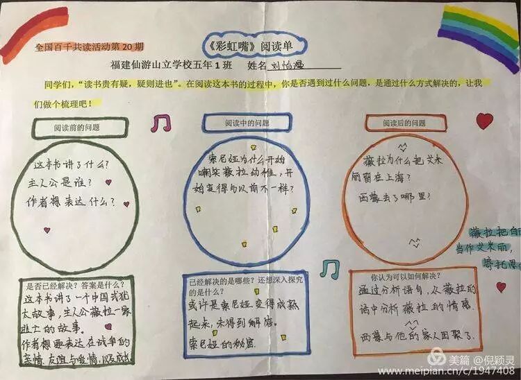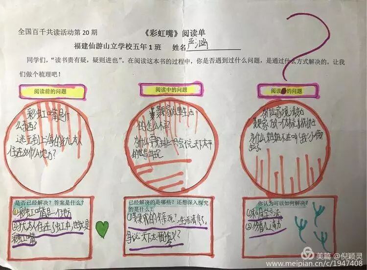 周一收起阅读单,浏览了一遍,发现孩子的问题虽然五花八门、内容繁多,但都指向阅读本身,说明阅读真正在发生,他们真正走进了书里,真正产生了思考。