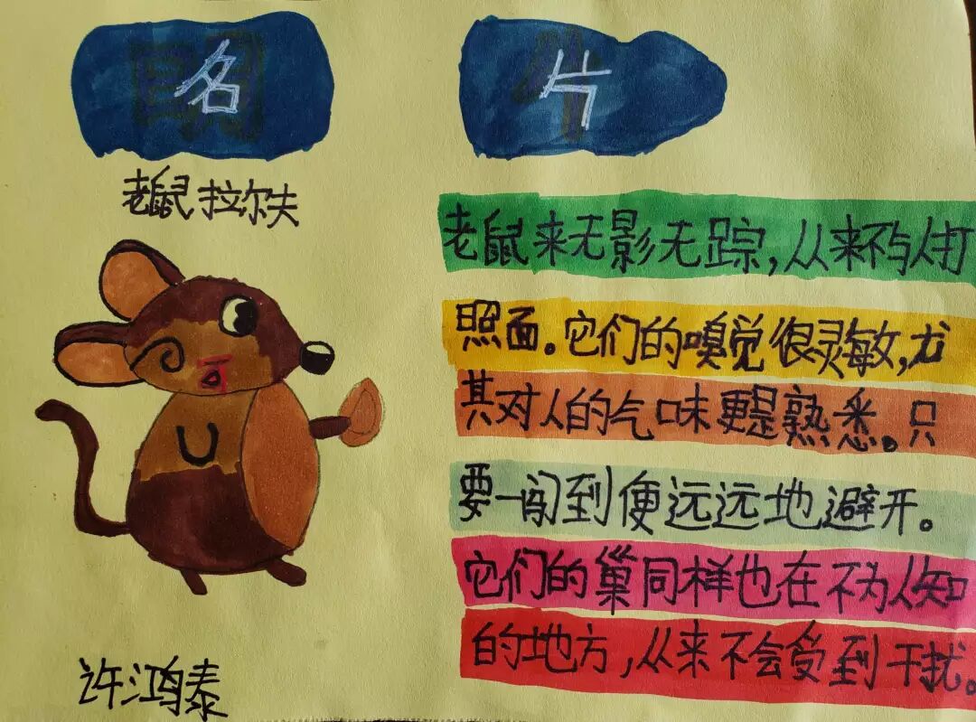 所有的“名片”都贴在黑板上,孩子们课下都愿意来围观,阅读。
