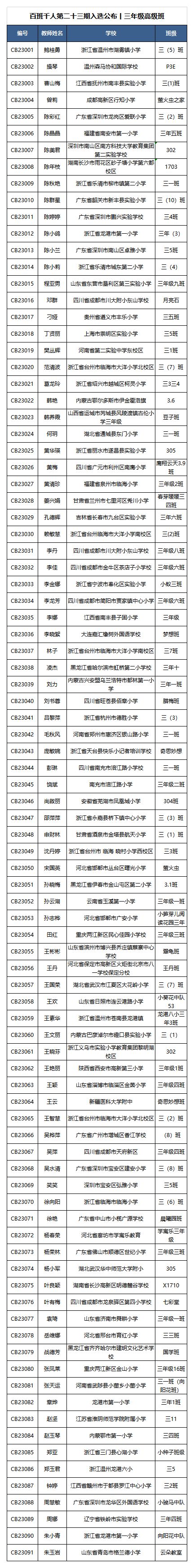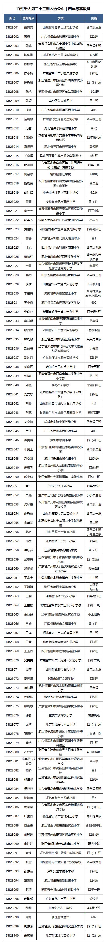 第二十三期百班千人读写计划入选班级及编号如下(为方便查找,一律以姓名首字母为列):