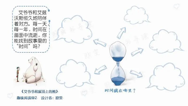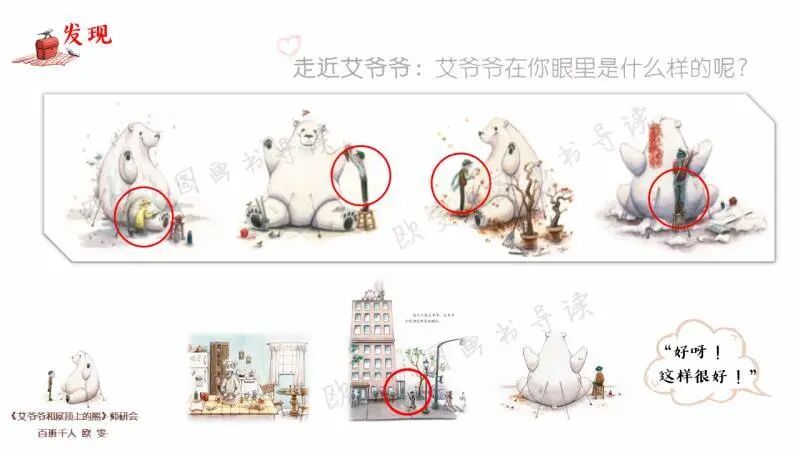 那就带着孩子们去画面里去寻找细节,发现艾爷爷丰满的形象,寻找宝藏细节,开启想象宝盒,跟随作者探寻时间的秘密吧!
