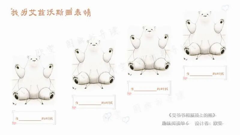 在温柔美丽的陈捷老师主持下,百千一年级导师团的欧雯老师——孩子们喜爱的帽子老师以“一同眺望整个世界”为主题,把《艾爷爷和屋顶上的熊》这个从容宁静的故事与一年级的老师们做了细致的解读。