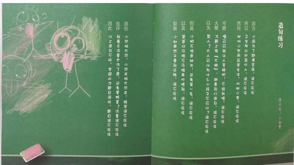 课前2分钟,黑板上让王子澄写了“《文字森林海》新书发布会”几个字;我则赶紧把包书的纸拿走,简单地把新书摆弄了一下;下面叽叽喳喳的嘴巴慢慢停了下来。