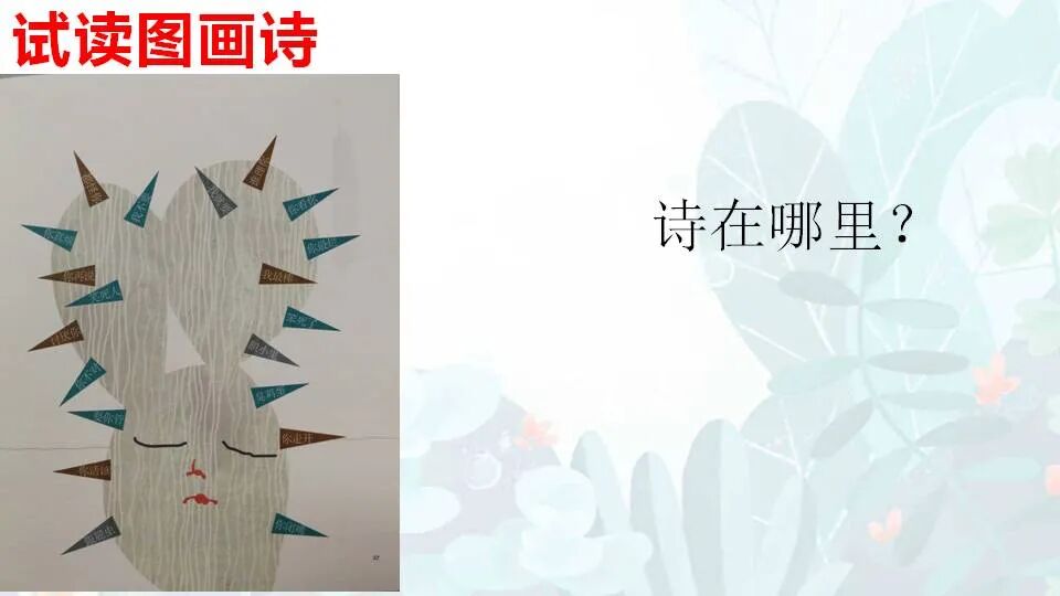 立刻有人按耐不住了,抢着说道“一般的诗是由文字组成的,图像诗肯定是文字长得像图画”“图画看起来也可能像文字”“肯定是图画和文字结合起来的”“那不就是诗中有画,画中有诗嘛”……