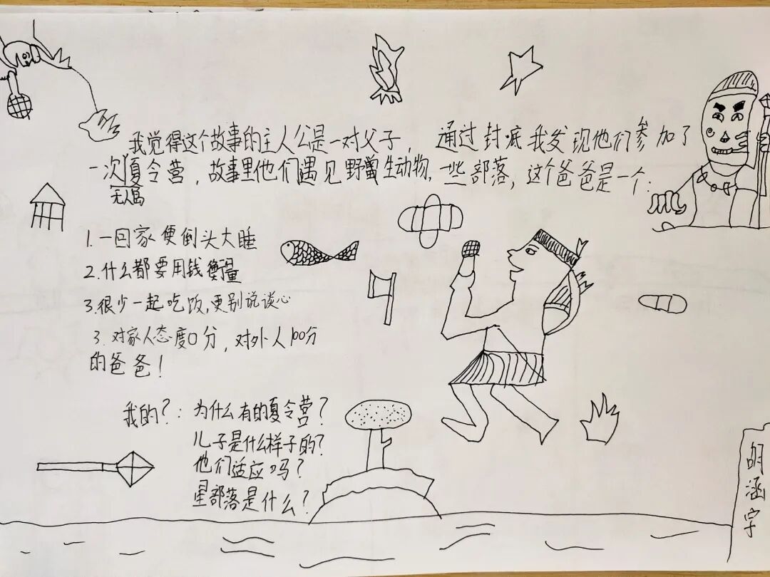 通过家长问卷、孩子画画才知道原来《不着家的老爸》《爸爸到底在哪儿》等作文的出现并不是空穴来风,亲子共读《无人岛上的独孤星部落》也成了势在必行。