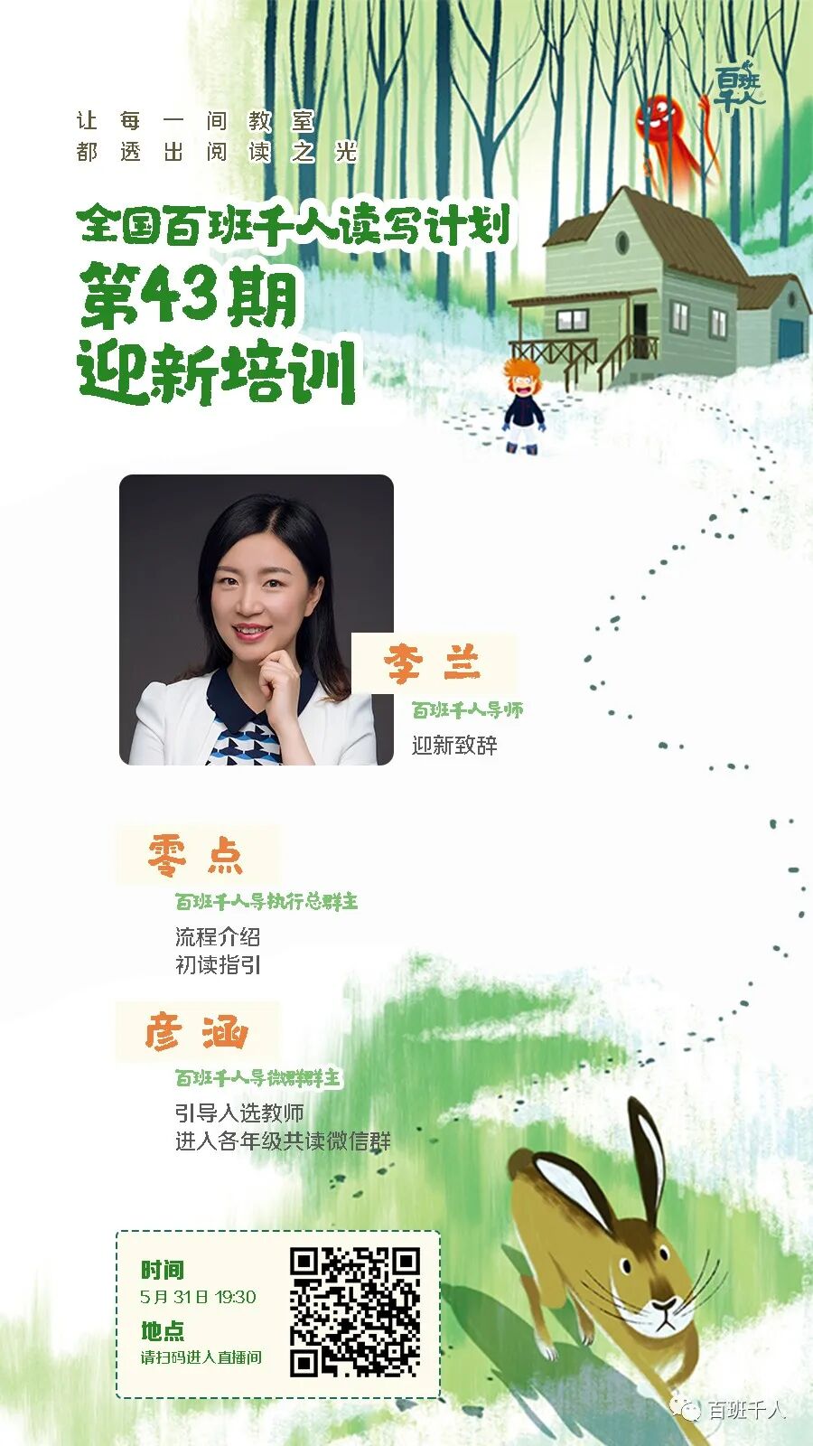 明晚19:30,43期班级共读迎新培训,欢迎各位首次报名的老师参加!(报名还在继续,6月1日24时截止,各位老师抓紧时间哦~)
