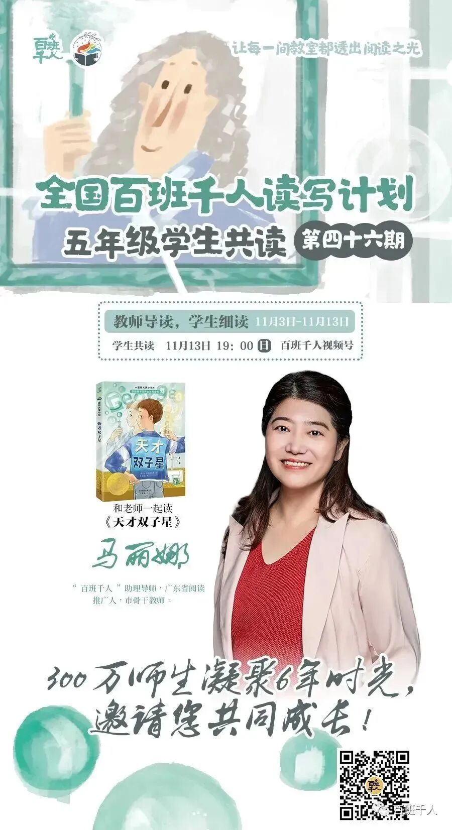 其实我们都想让孩子多读书,可又不能保证孩子拿到书后以后是否用心去读,能否真正读懂,一个人读书的时候难免会遇到重重阻碍,因此影响了孩子阅读的兴趣。百班千人的共读计划中“和老师一起读”的线上读书会是一种全新的有效阅读形式,你会发现,在这样的共读活动能够让孩子在阅读更加深刻而生动的领悟书中的内容,真正感受阅读的快乐。