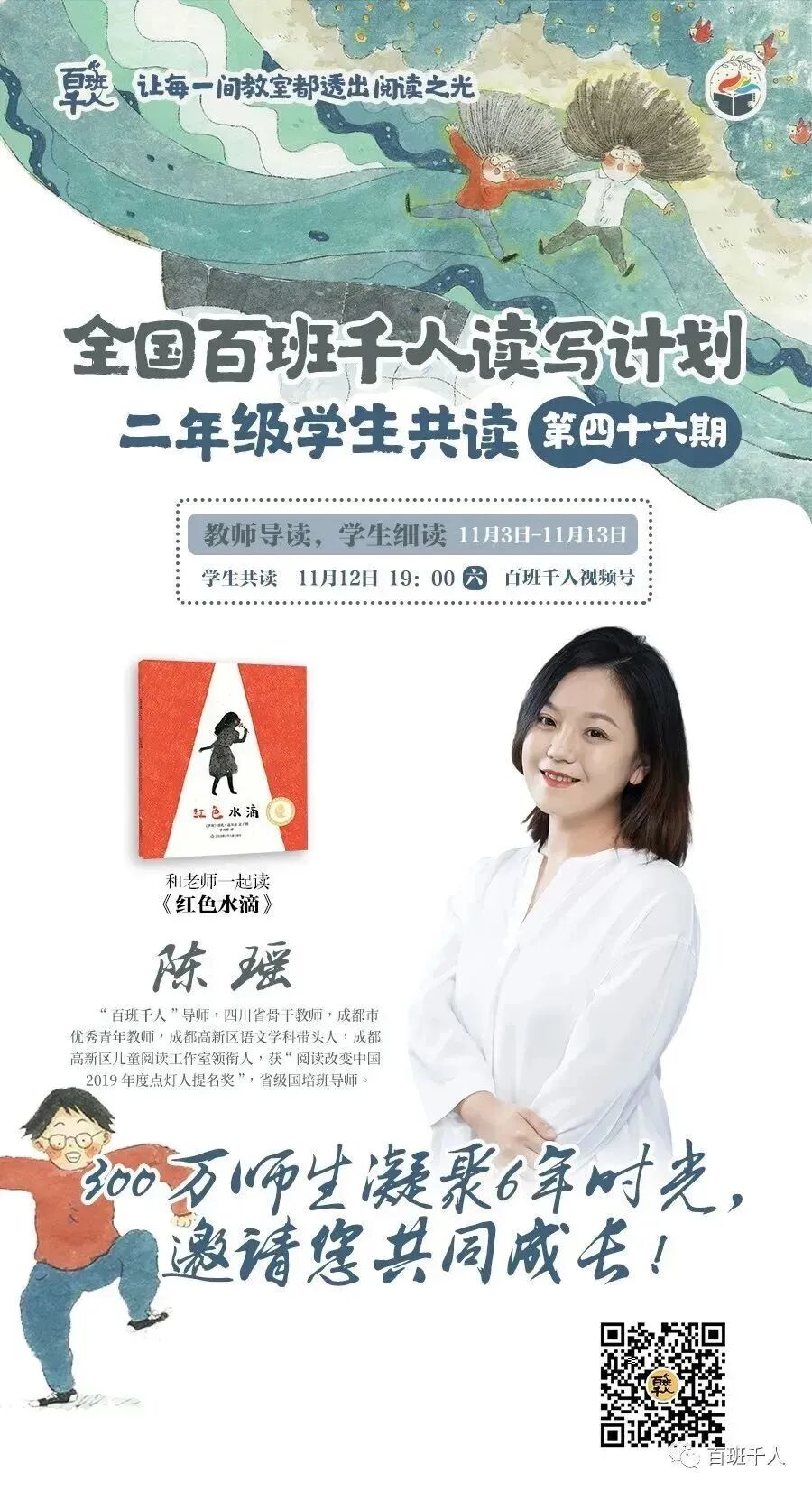 跟随名师通过阅读感受到孩子拓展的思维、放飞的理想、童趣的世界。线上万人共读是充满激情四射的,通过深入理解,专业的梳理,让孩子在阅读中不仅游刃有余,在这基础上还能做到创新思维,积累丰富的知识,实现书籍点亮人生。