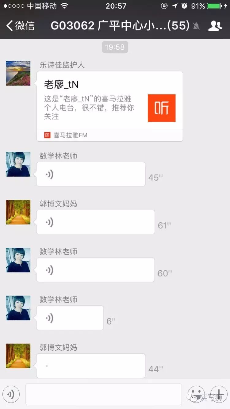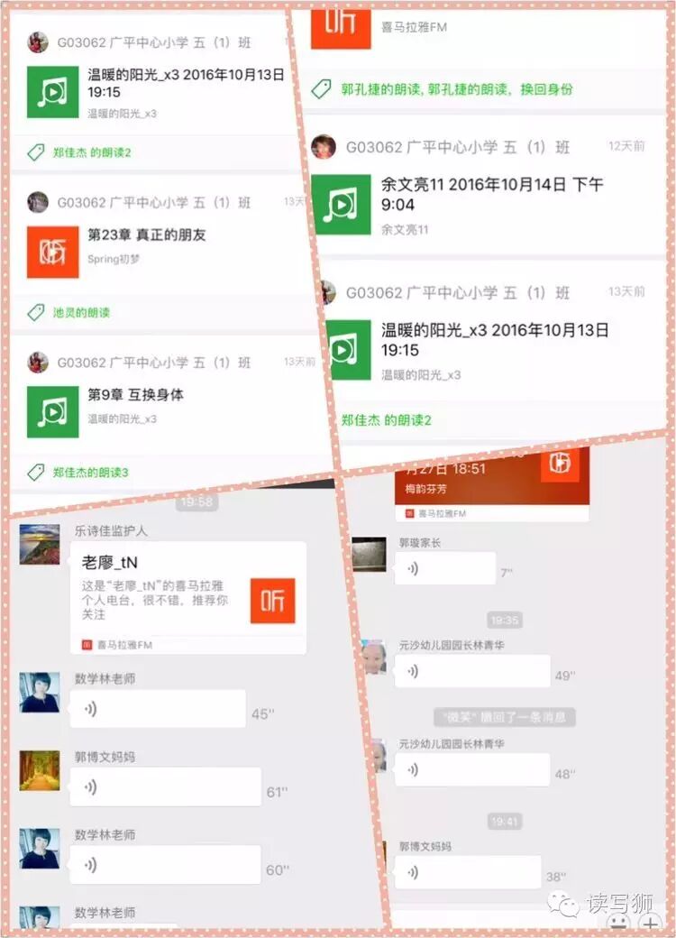 四、学生的朗朗书声(微信群、喜马拉雅录音),手机播放孩子的录音,听听这是谁的声音?孩子们屏息凝神,听得可认真了!因为认真,所以就一下子听出了同学的声音!