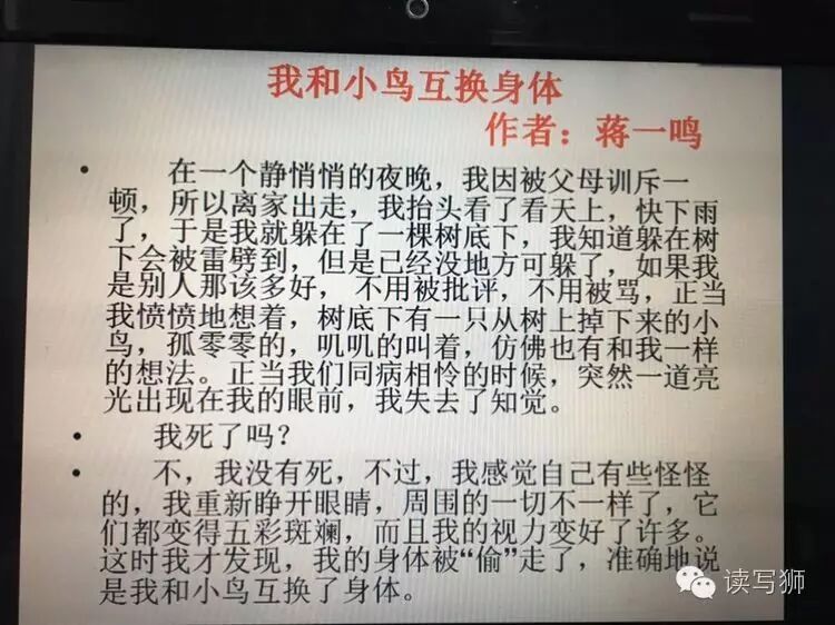 其实还远远没有结束,比如你觉得你是书中的哪个人物?你和你的好朋友发生过什么什么故事?你想对他说些什么?你能和老师说说你的心里话吗?
