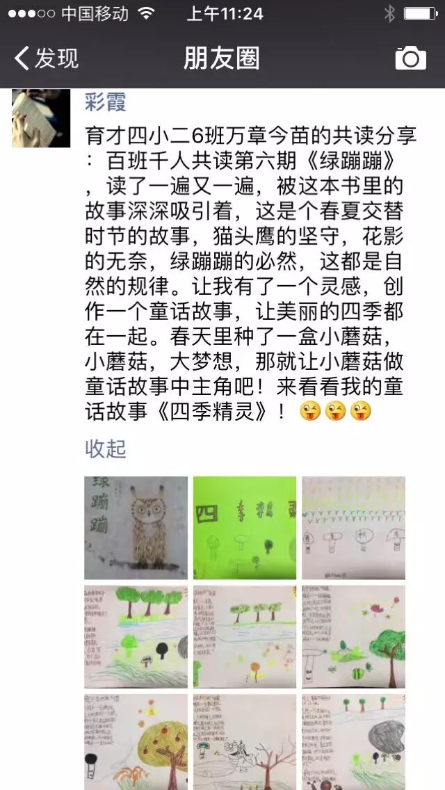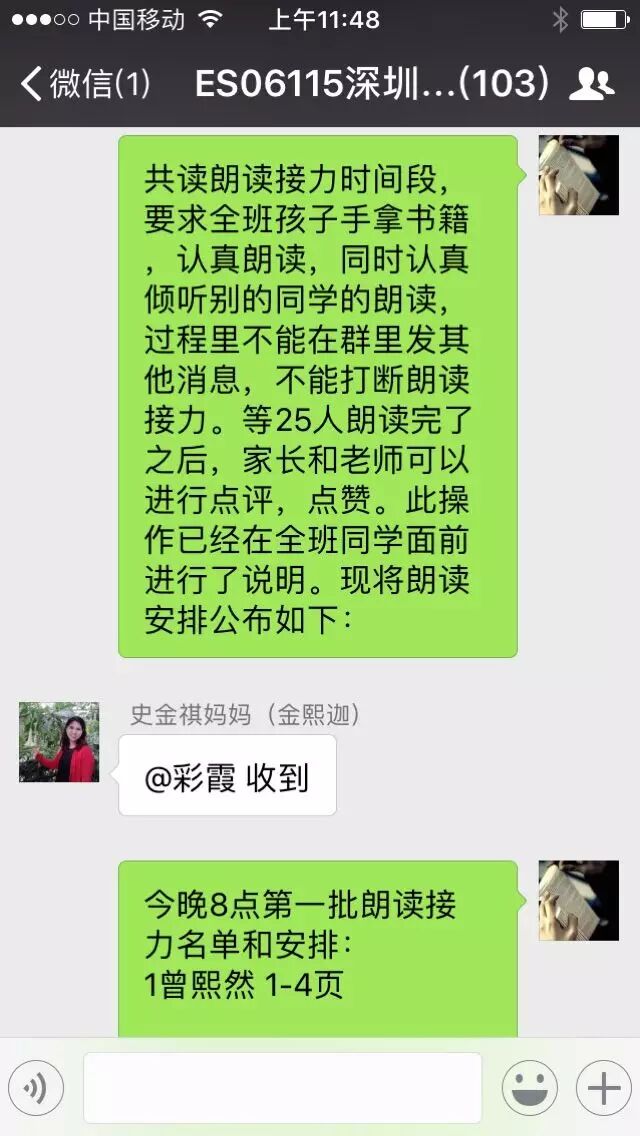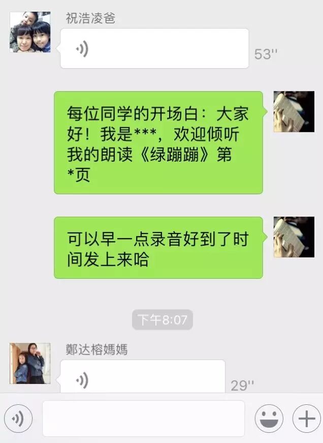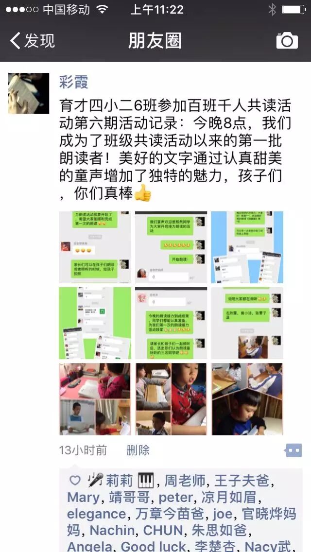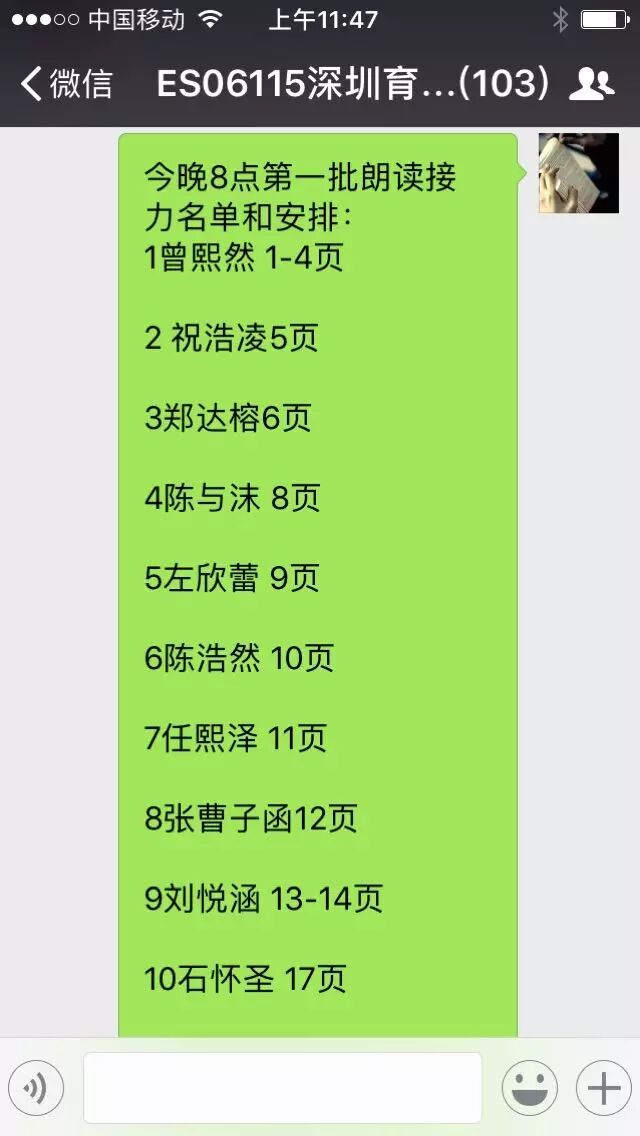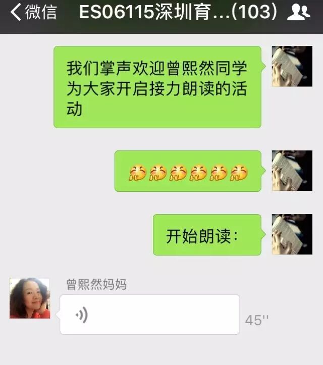 一节课朗读的时间是不够的,我们有了自己的"朗读者"活动。朗读接力在语文课堂虽然常常进行,可是在班级微信群里进行还是第一次呢。想到不仅是全班同学和老师在倾听自己的朗读,还有全体家长们呢!同学们认真又紧张地准备着,跃跃欲试。