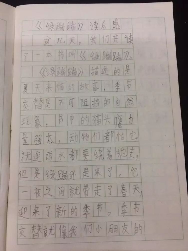 第一次朗读者活动圆满成功了,班级共读氛围又进入了新的高潮,孩子们的阅读体验深入之后的表达像可爱的绿蹦蹦们一样,一个接着一个地涌现出来……