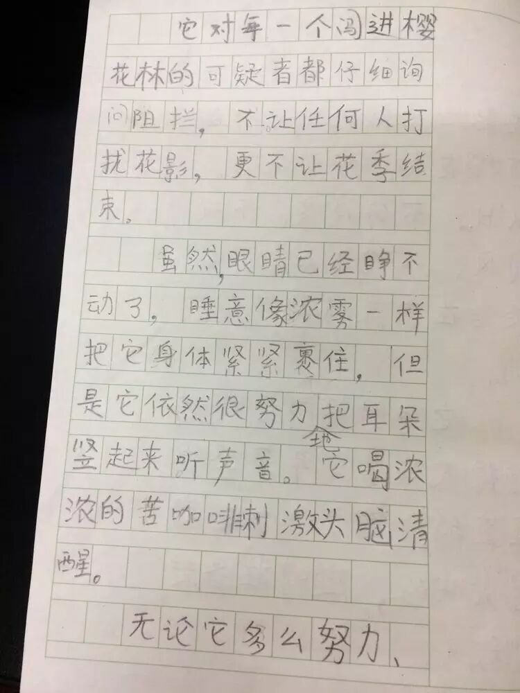 王子夫同学的创意也好玩儿:樱花林里春天有花影,夏天就应该有叶影!枝叶繁茂就是夏天的特色呀!有道理!
