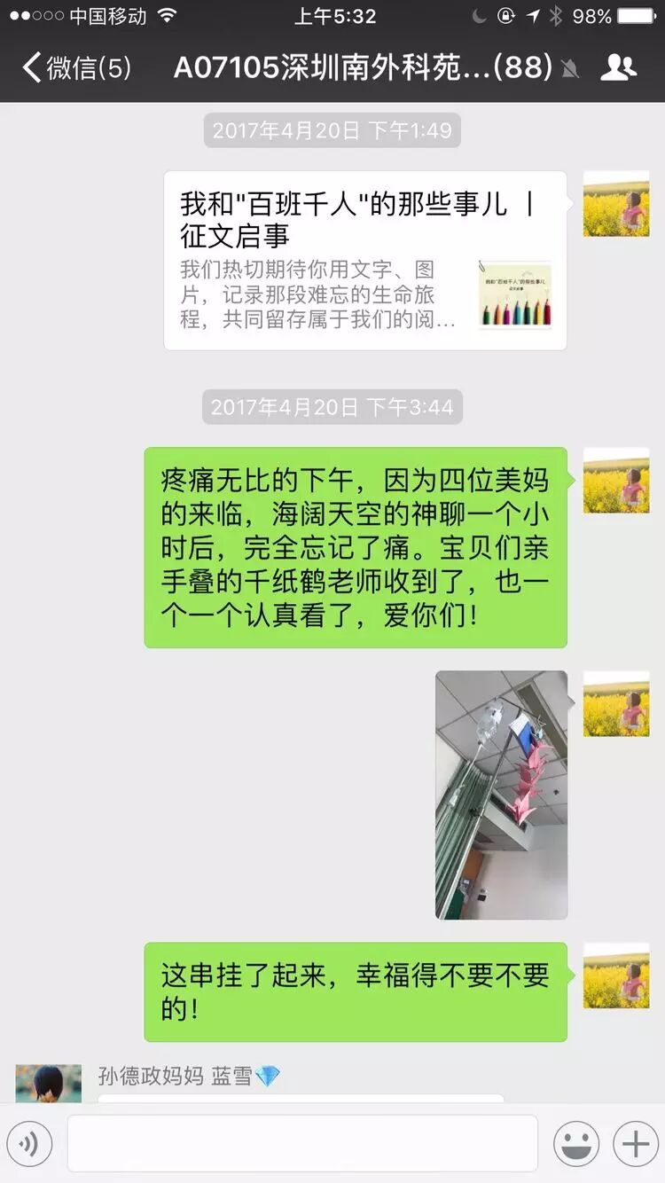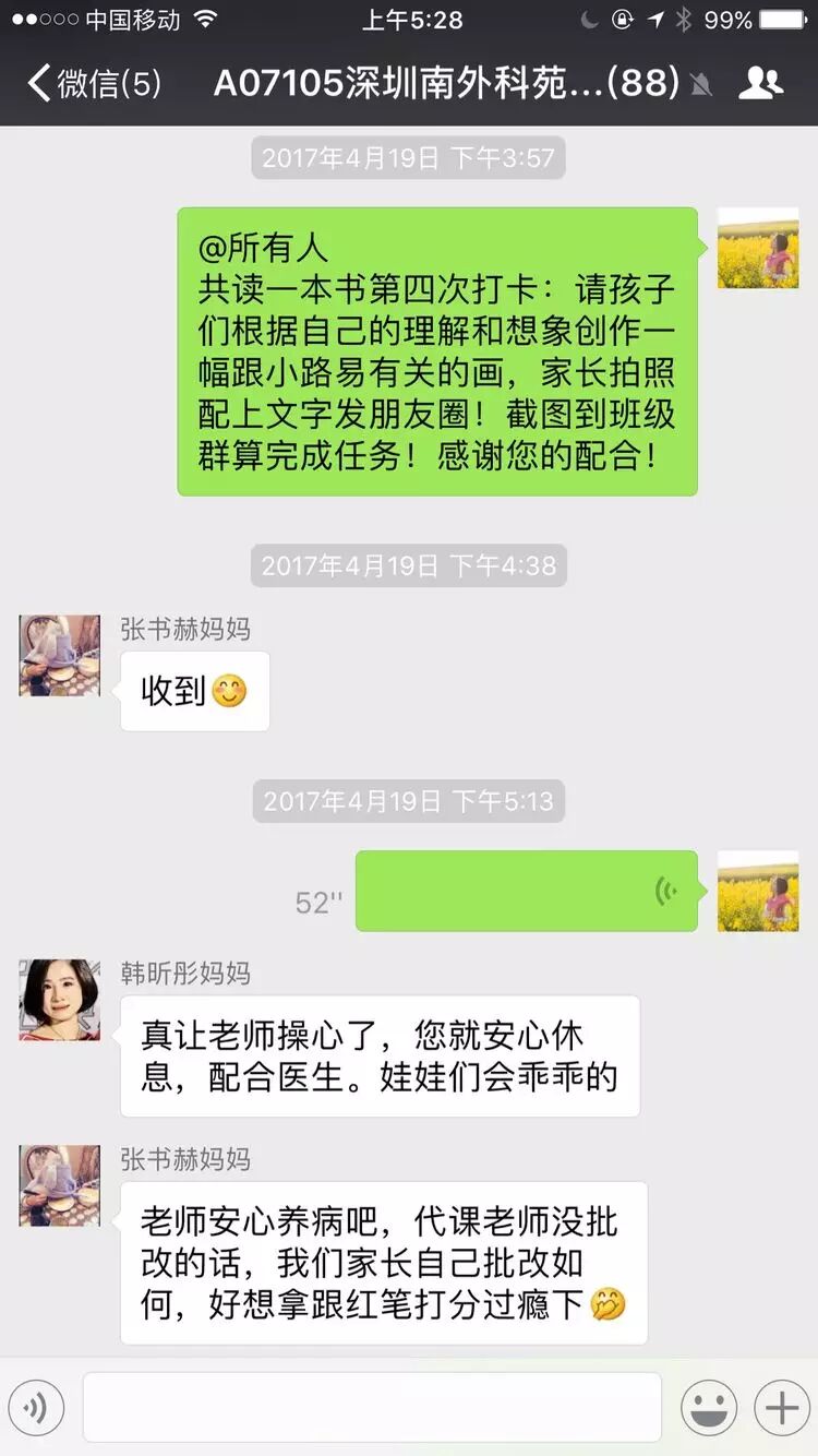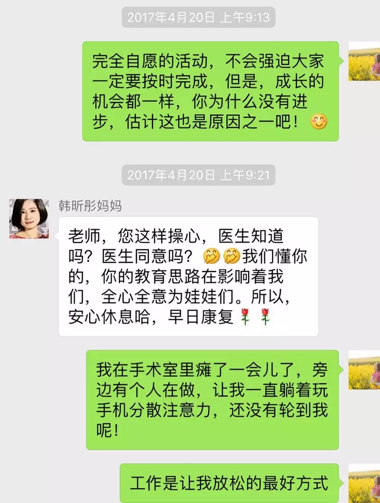 4月29日出院,刚好是咱们百班千人共读活动,来到学生家,和孩子们一起听微信群里导师的分享!