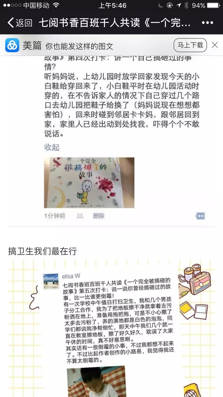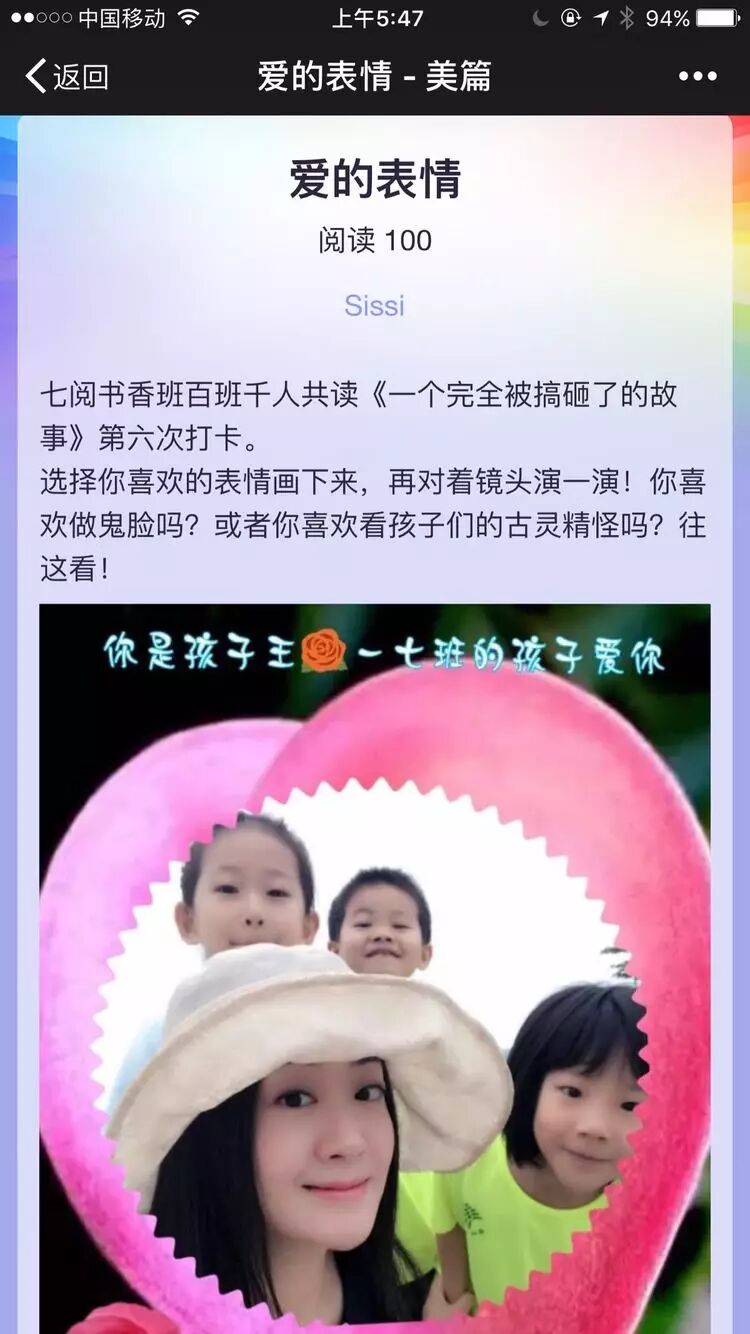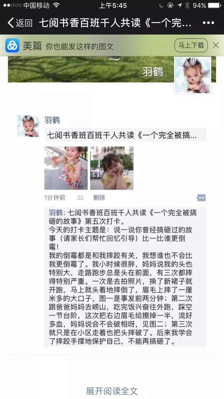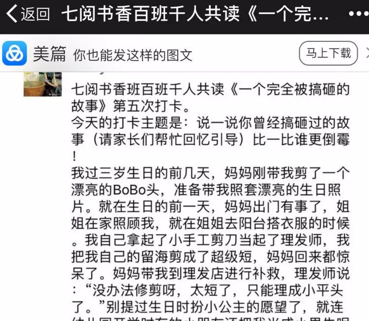 家委会会长张书赫妈妈完成的第一次打卡作业,并且分享了美篇制作心得!