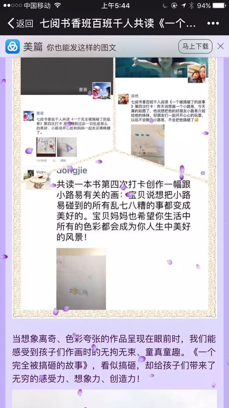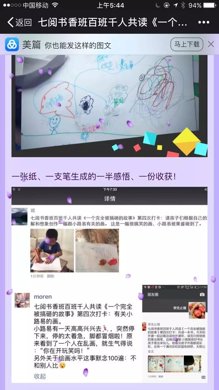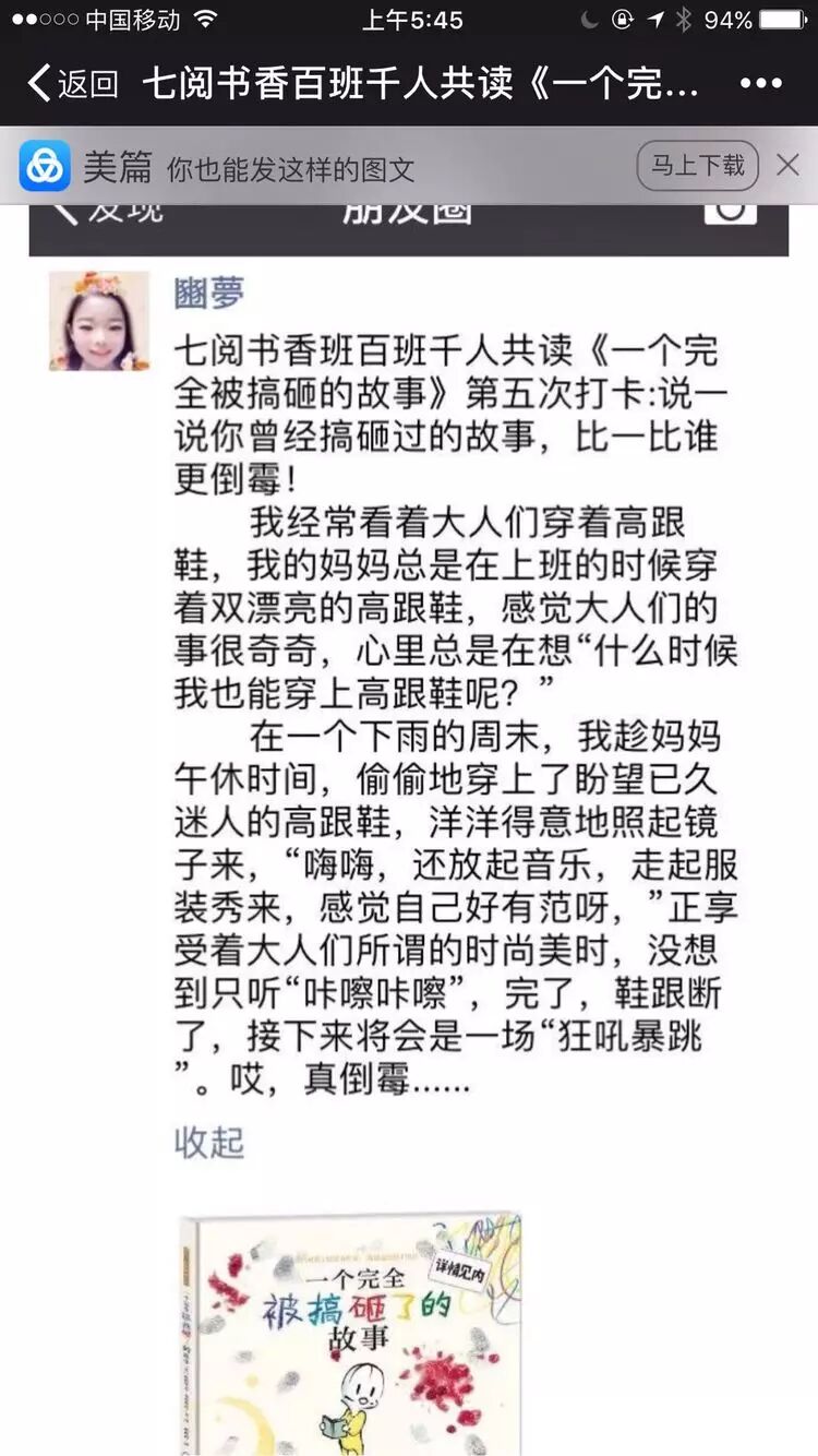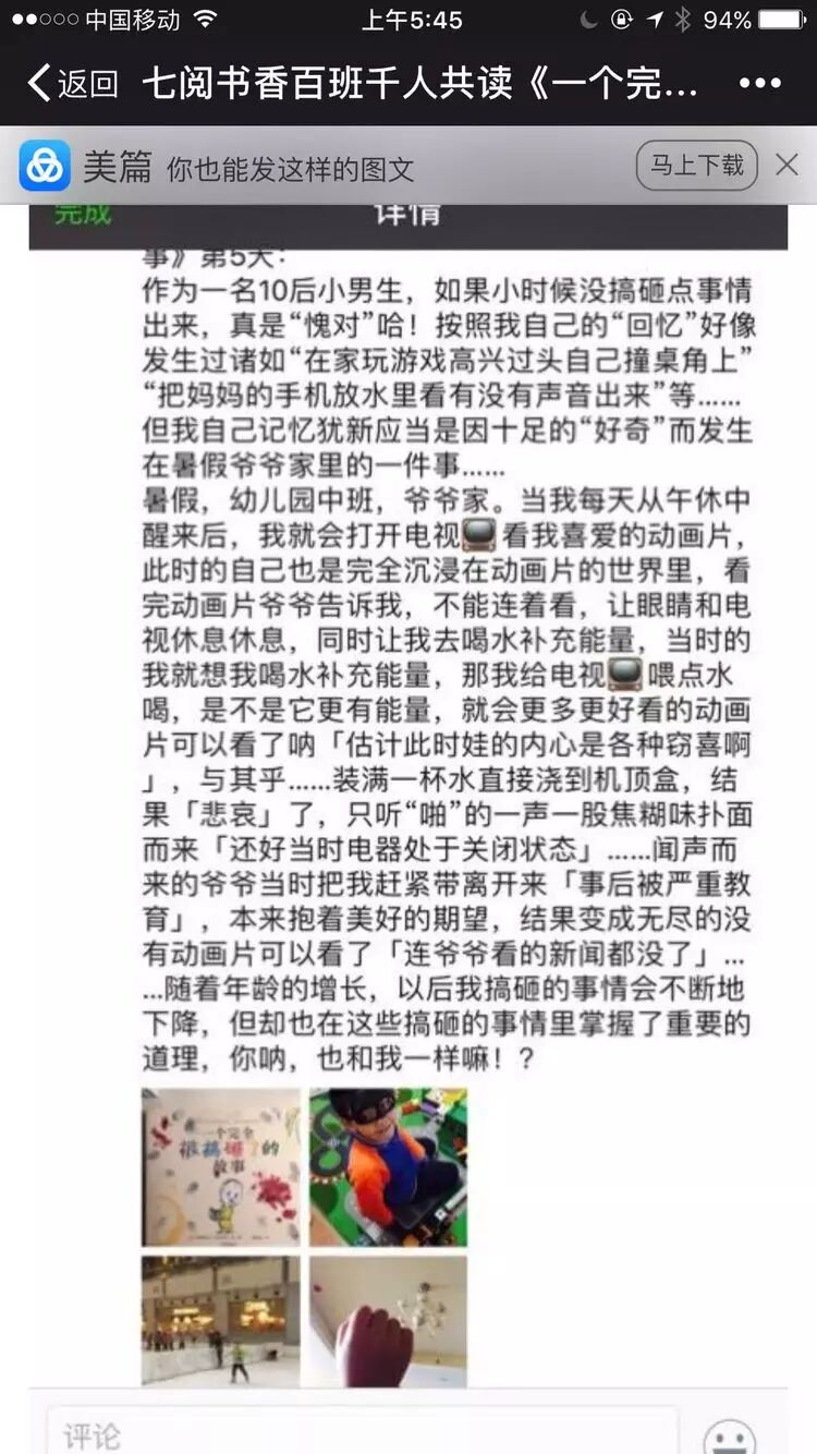 家委会会长张书赫妈妈完成的第一次打卡作业,并且分享了美篇制作心得!