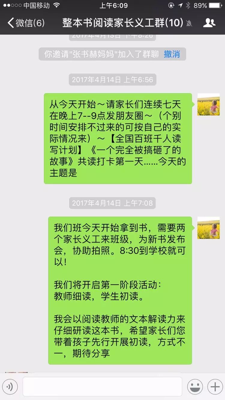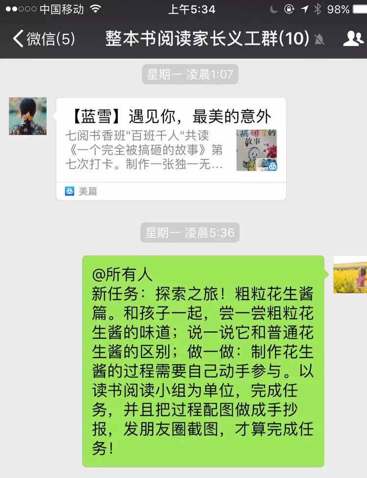 单靠老师一个人的力量是非常有限,于是我们班的整本书阅读家长义工群成立了!