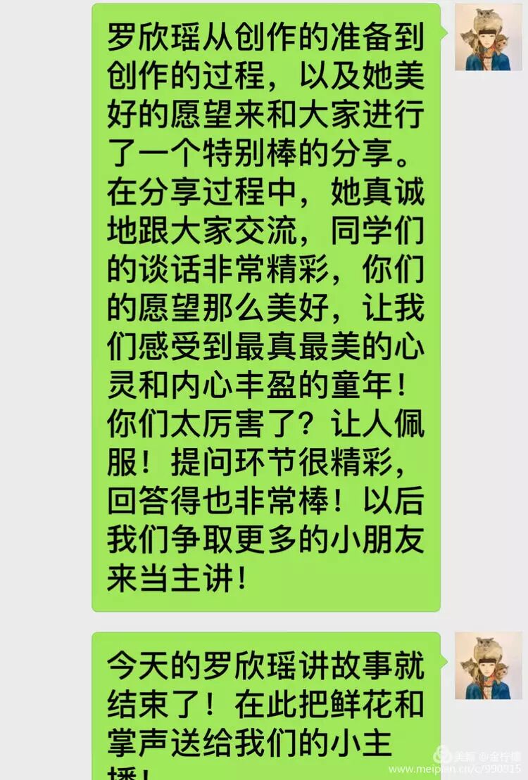 周雨默:谢谢罗欣瑶,希望我们班的小朋友还能出更好的作品。希望我们班每个人都有一个机会开一个讲座。