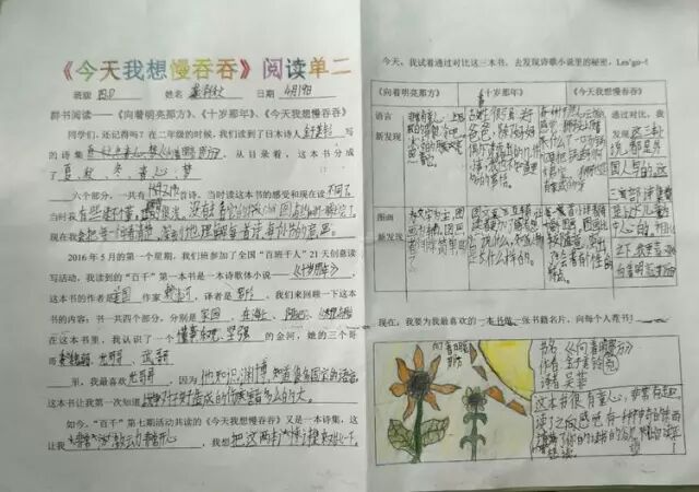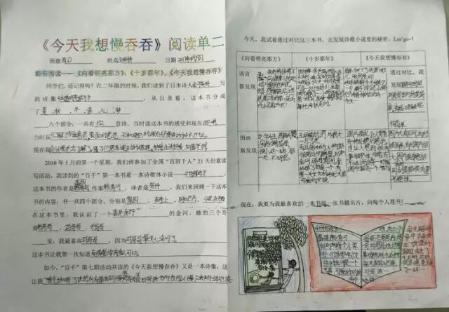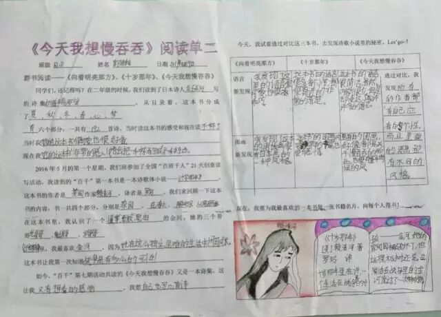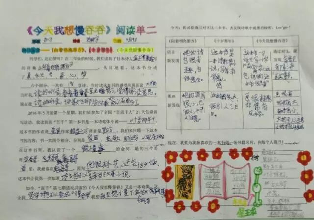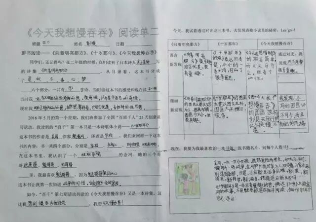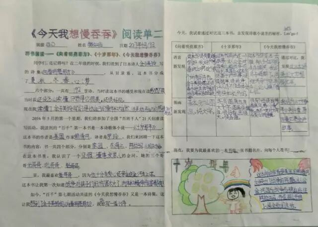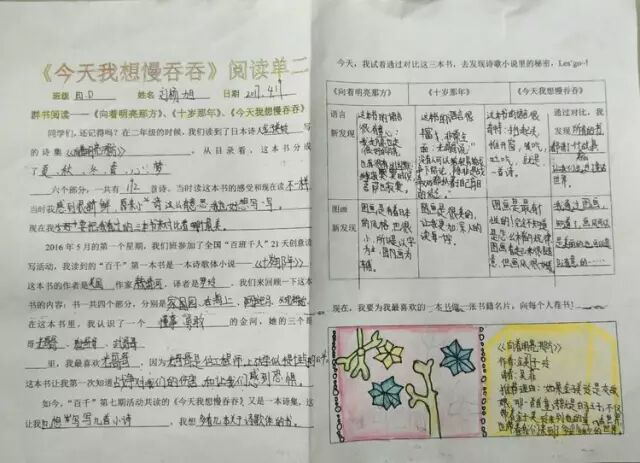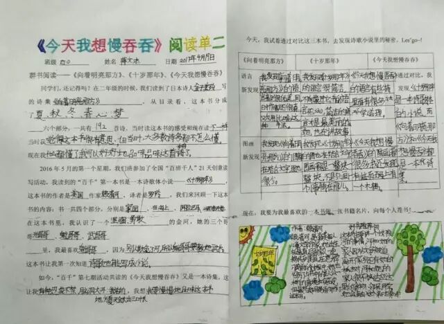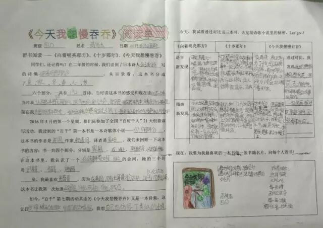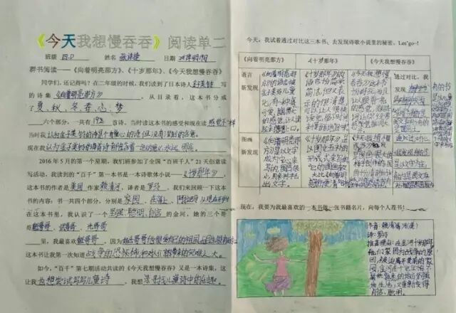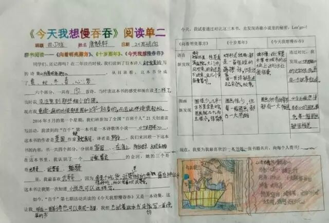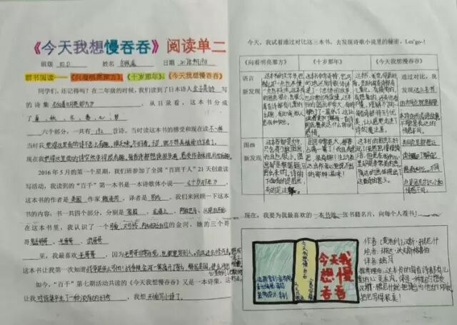 一年的百千共读活动里,我们读了六本书,从浪漫的热带雨林《十岁那年》出发,走进了一本讲述童年回忆的《永不变老的日记》,接着穿越到妖精的世界,探秘《妖精的小孩》,跟随印第安桨手《划桨入海》,游历北美五大湖,随后来到日本东京的涉谷车站,那里有静静等候主人的《忠犬八公》,又回到祖国的青岛,陪伴留守儿童圆圆,跟他,他们,一起“挖”一条《海底隧道》……如今,我们开始了第七本书的“阅读之旅”,它是一本充满童趣,让人怦然心动的儿童诗集——《今天我想慢吞吞》。