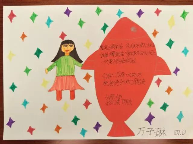 大大的红鱼。小小的女孩。闪闪的星星。美美的小诗。万子琳的小诗作品,好喜欢??????
