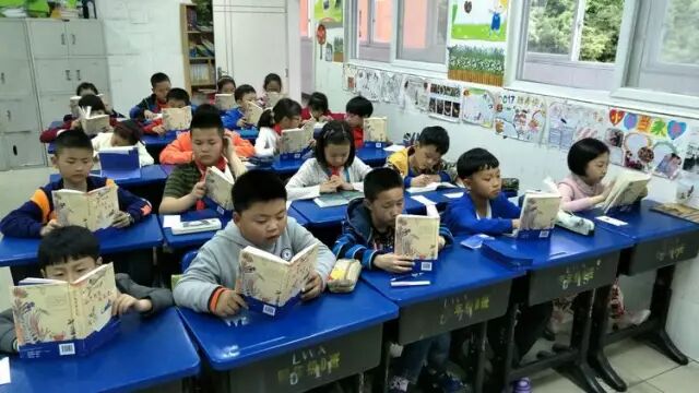孩子们细嚼慢咽,反复咀嚼,有的甚至连看了五遍,自然回味无穷……但也不全是这样……有的孩子还没尝到苹果??的味道,就丢一边,明明还没有读懂读透的书,却说“不好看”,遇到这种情况的时候,我会对他说:“孩子,你来。你再打开书,随便选一个部分,读给我听。”往往都是,这个孩子读着读着就不出声了,因为他看“进去”了,他忘记了朗读,他被书吸引了……