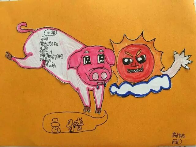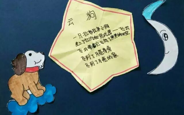 还有好多好多好玩又可爱的小诗,有书中的,也有孩子们自己创作的,大家开动脑筋,动手制作,很快把它们一一呈现出来了。