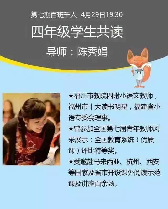 4月29号晚上七点半,百千导师秀娟老师准时跟孩子们见面啦,百千第七期全国学生共读活动正式拉开帷幕。