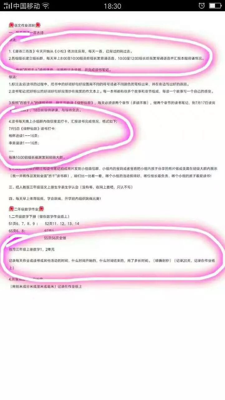 暑假作业最重要的一项就是参加"百班千人"阅读嘉年华活动,用作批注的方法读书并做好读书笔记。数学老师很给力,布置作业配合默契,我读书,她计时,携手并肩,珠联璧合,共同打造书香班集体![胜利]