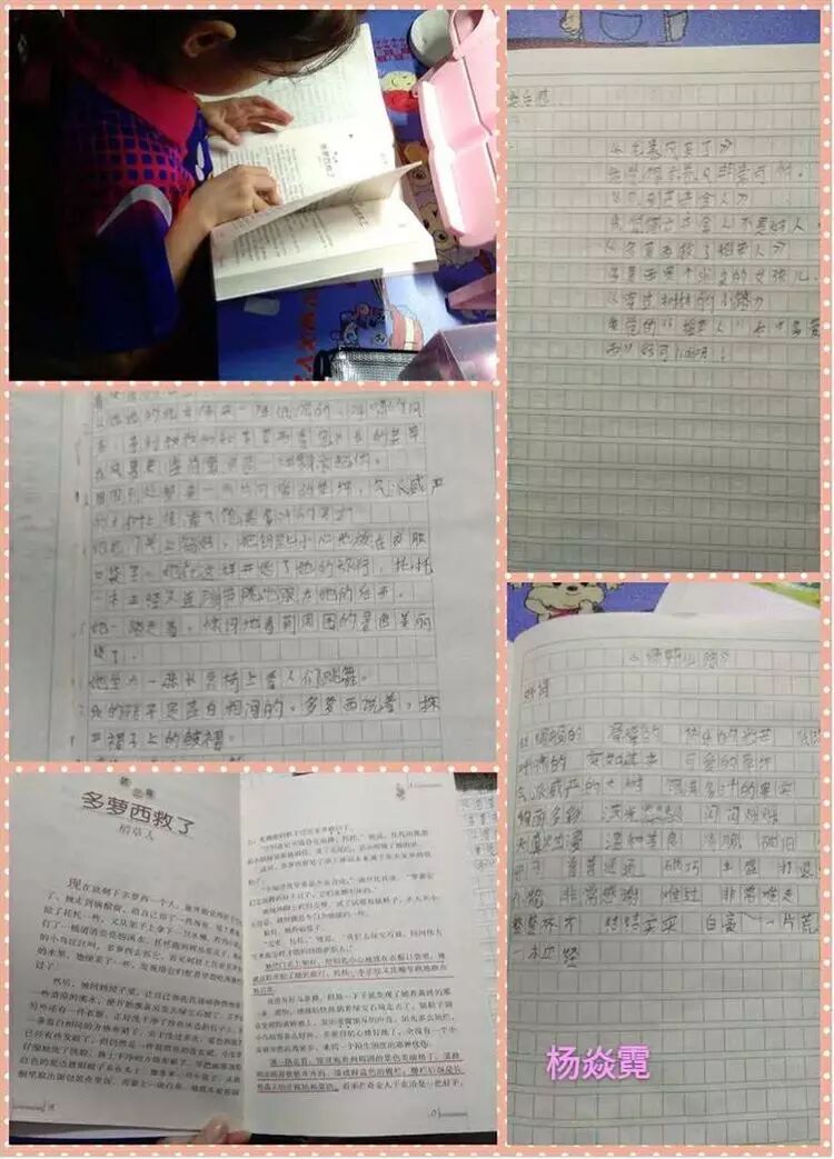 百班千人共读一本书活动带动了很多原本不爱阅读的孩子,让他们养成阅读经典的习惯,拓宽了孩子的知识面,锻炼了孩子持之以恒的品质,让孩子们体会到坚持做一件事是会有所收获的。看着孩子认真阅读的样子,他的专注令我感动,他畅游书海,结识更多书里的朋友,学习他们身上的优点,思考发生在他们身上的故事,我想在他今后的成长道路上,一定是有所帮助的!