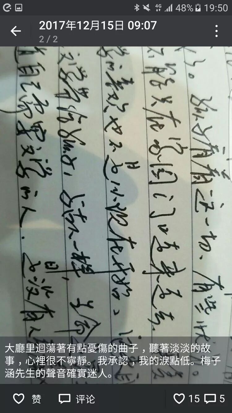 我是個很不爭氣的人,淚點很低。聽到梅先生放的那首雪人?的歌,眼眶就紅了,再聽彭先生的蒙古歌謠,喉嚨又緊了,直到那位自費遠道來學習的退休老教師為自己教育的夢想而歌唱時,簡直激動到不能忍耐。入職十八年,我聽過多少次師德報告,聽過多少回匯報交流,沒有哪一個人給我的震撼有那樣大。還有梁清華老師,他們都是我心中的英雄。我多想告訴她,和平年代有英雄,您就是,您們都是。