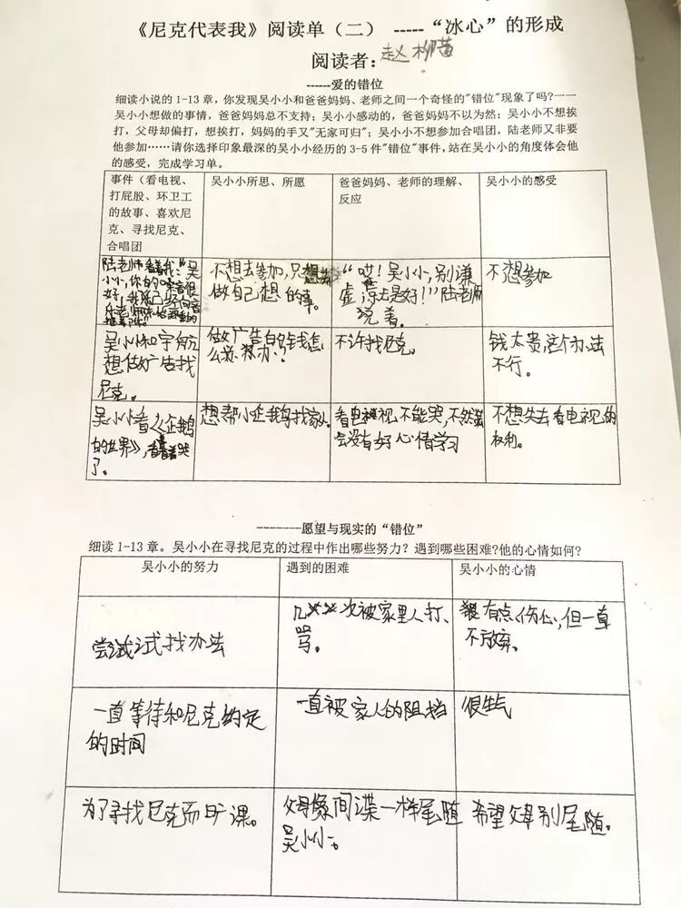 借助阅读单帮助学生梳理故事,走进吴小小的内心世界。