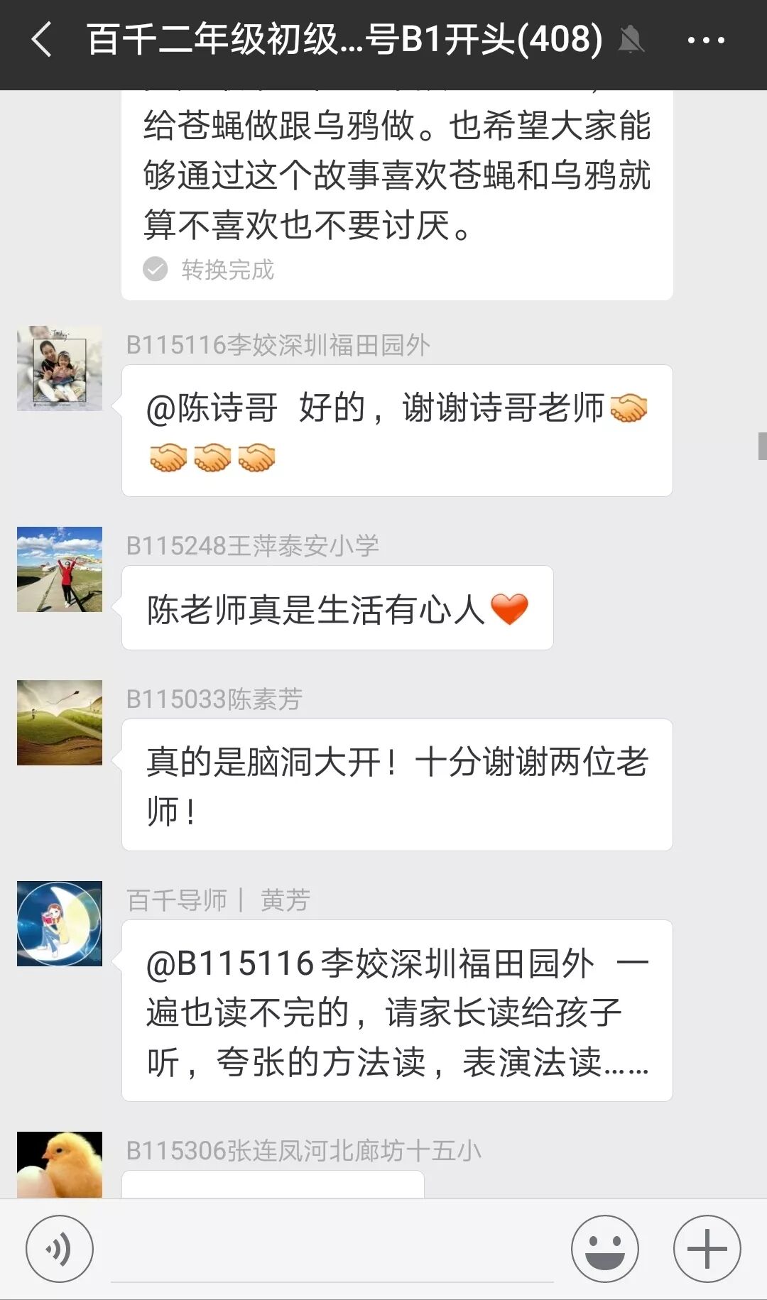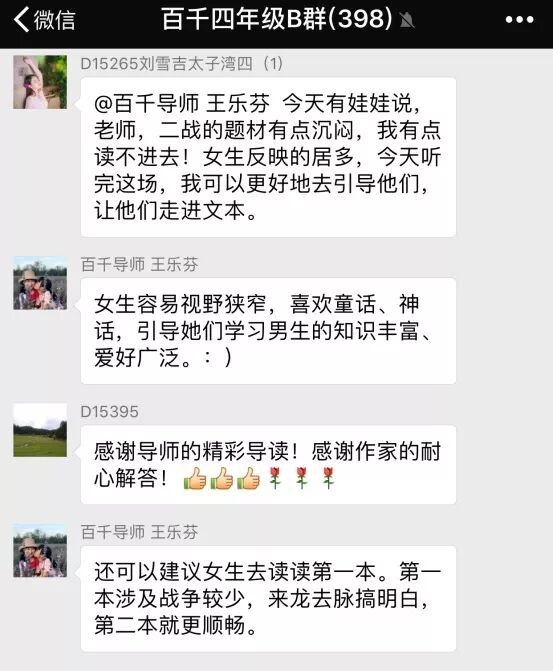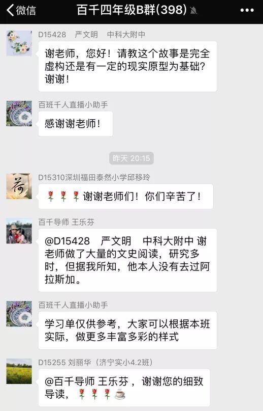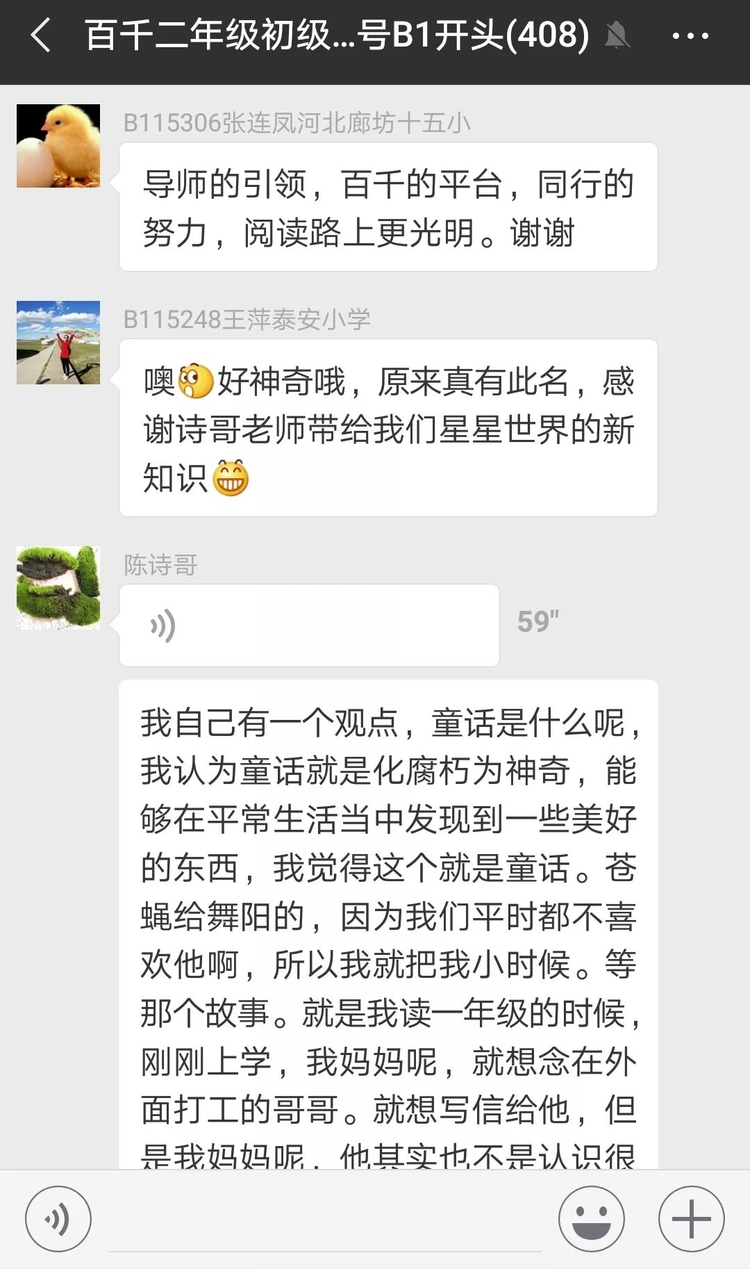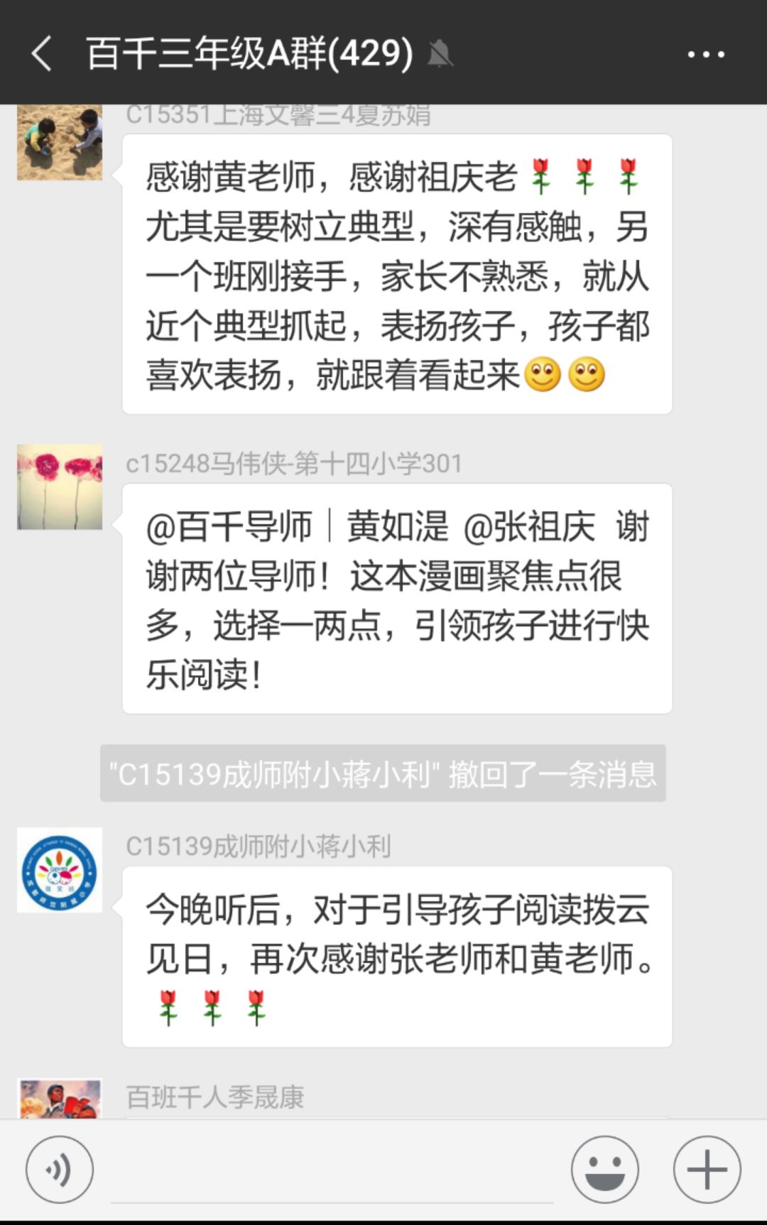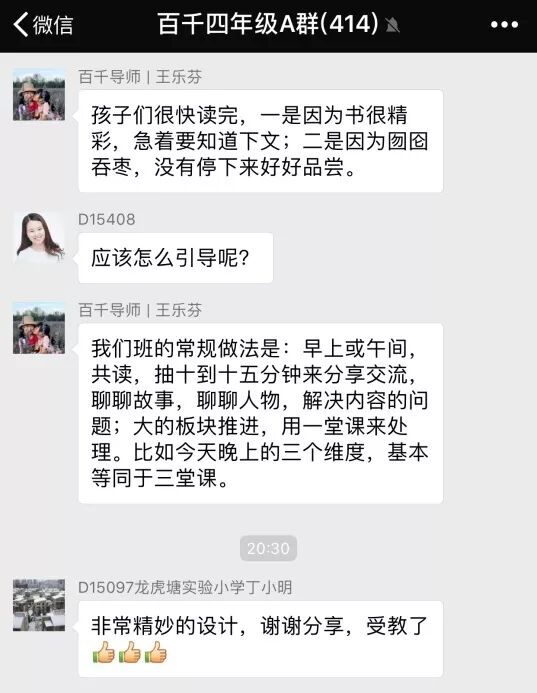北京时间9月26日晚7点半,在第15期的百班千人一到六年级的教师共读群里,一场共读盛宴准时开启。